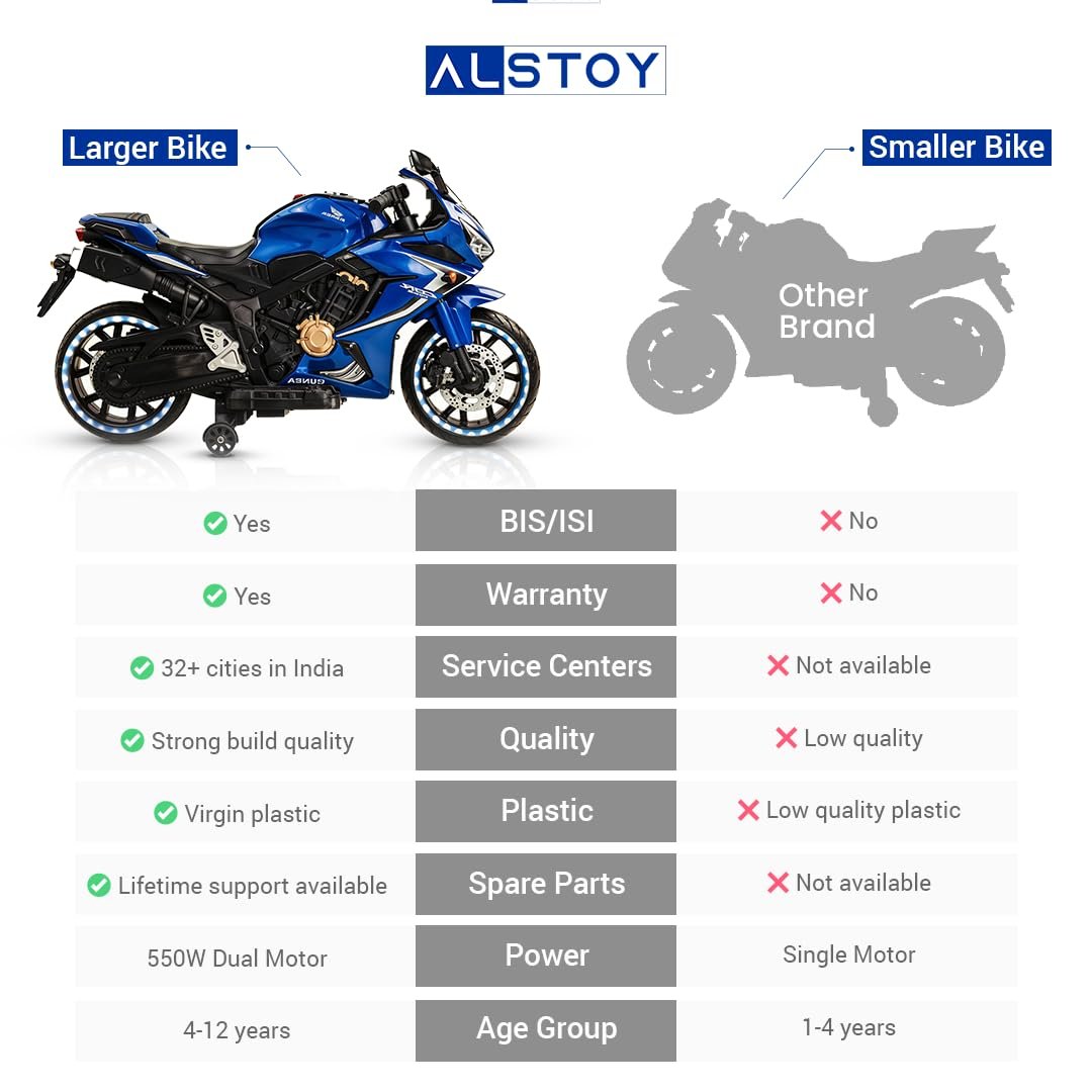 Safe & Durable – Alstoy ride-on bikes and cars are designed to with European safety standards and are BIS/ISI-IS:15644 government-approved, ensuring exceptional safety and quality. Proudly made in India, these ride-on vehicles are built for reliable performance and long-lasting enjoyment.