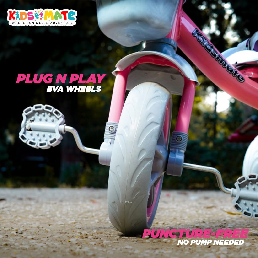 Kidsmate Starlight Premium Cycle for Kids Cycle 2-5 Years – Tricycles for Boy&Girl – Baby Cycle -Bicycle for Kids| Bike for Kids with Eva Wheel,Bell&Basket for Toys -Tricycle 30Kg Capacity (Pink)
