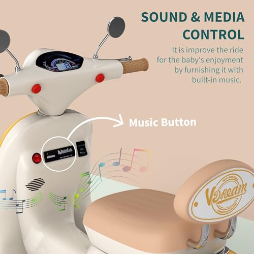 kidsROAR Electric Bike for Kids, Battery Operated Vintage Scooter for Girls and Boys with Music Wide Seat, Safe Bike for Kid, Ages 2-6 Years, Stylish & Fun Design (Yellow)