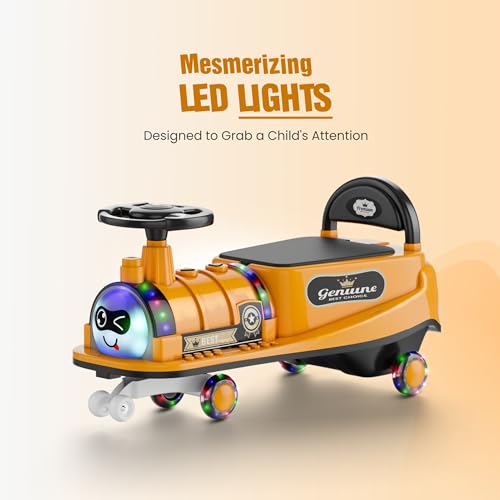 kidsROAR Panda Car For Kids Train Shape – Push Car Magic Swing Fun Musical Rider With Lighting Silicone Wheels, Music, And Lights – Perfect For Ages 1 To 5 Years & Up | 100Kg Capacity, Orange