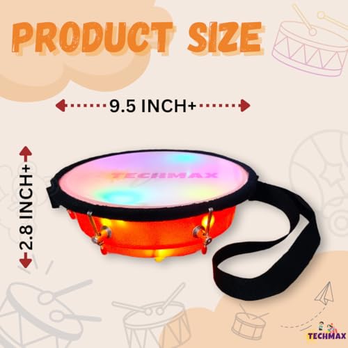 Lighting Dholak Tasha – Sensor Based – Rechargeable (Orange – Single Side – 9INCH)