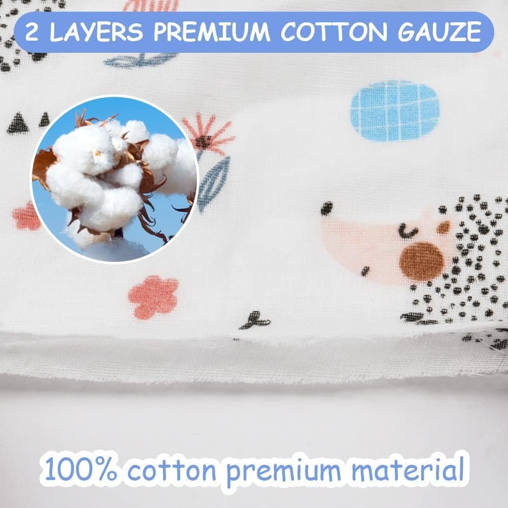 Material: Premium Quality Super soft Organic pure muslin cotton high quality,super absorbent Double Layer.