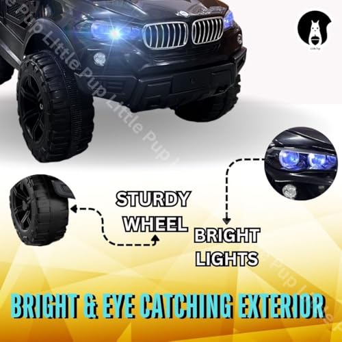 LITTLE PUP Kids Speed-888 Battery car for Kids | Battery Operated Jeep for 1 to 7 Year Kids | Electric Ride on-Dual Control Mode, Swing Function, Led Lights, with Seat Belts | (Black)