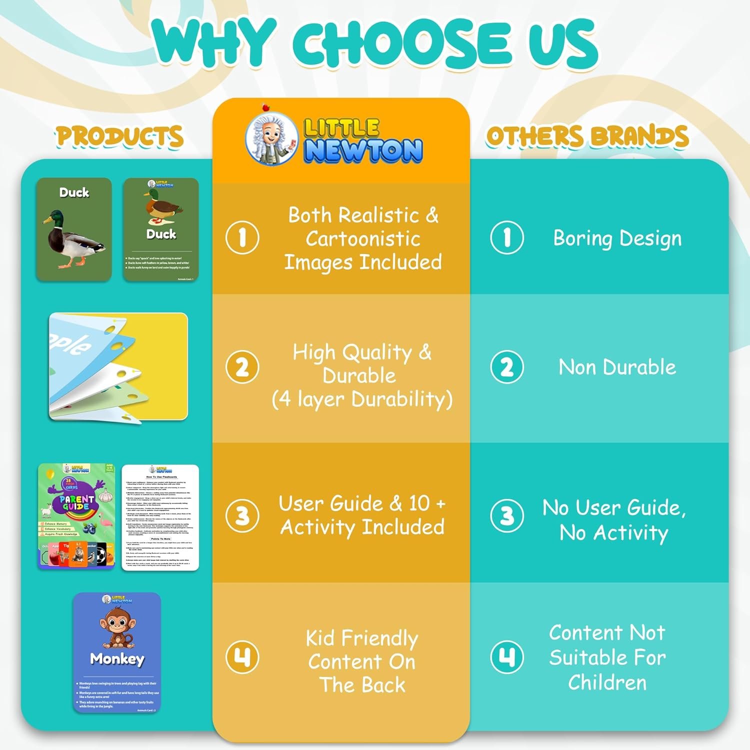 Little Newton Modern Flash Cards: Little Newton Flash Cards are especially designed for Gen Alpha, unlike traditional flashcards. Our flashcards are crafted by top educational experts,featuring both realistic images on the front to develop object recognition and beautiful illustrations on the back to maintain your little one\’s interest. Each card also includes a short,kid-friendly description about the content. Moreover it has playful background colors,bold fonts,perfect text size, and much more
