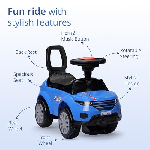 LuvLap Starlight Ride on & Car for Kids with Music & Horn Steering, Push Car for Baby with Backrest, Safety Guard, Under Seat Storage & Big Wheels, Ride on for Kids 1 to 3 Years Upto 25 Kgs (Blue)