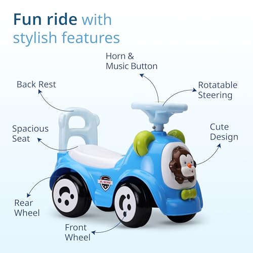 LuvLap Sunny Ride on & Car for Kids with Music & Horn Steering, Push Car for Baby with Backrest, Safety Guard, Under Seat Storage & Big Wheels, Ride on for Kids 1 to 3 Years Upto 25 Kgs (Blue)