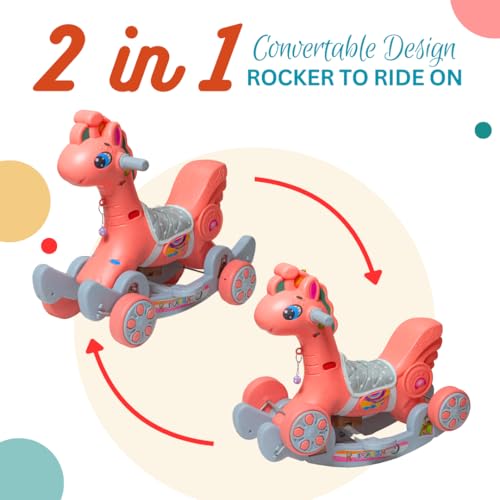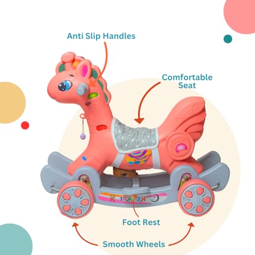 Maanit Rocking Horse Rideons & Wagons Non Battery Operated Ride On for Kids Boys & Girls (Peach)