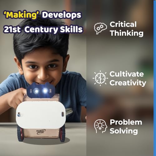 MakerVerse Emotibot | DIY Electronic Robot Kit | Robot with Remote Control | Science Project for Age 8, 9, 10, 11, 12, 13, 14 (Wood) for Boys & Girls