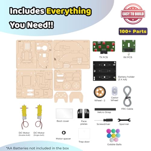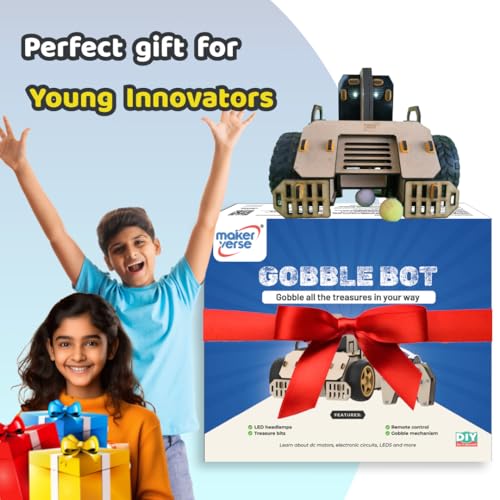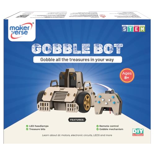 MakerVerse GobbleBot | DIY Electronic Robot Kit | Robot with Remote Control | Science Project for Age 8, 9, 10, 11, 12, 13, 14 (Wood) for Boys & Girls for Young Innovators