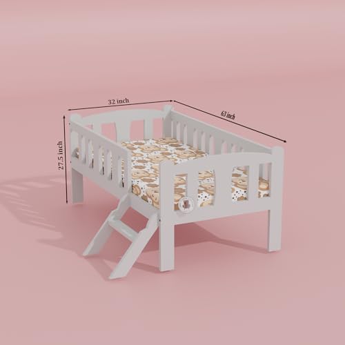 MAMTA HOME FURNITURE Wooden Kids Bed Cot with Ladder | Solid Wood Single Bed for Kids Bedroom Furniture | Junior Bed for Kids Room Furniture (Off White Finish)