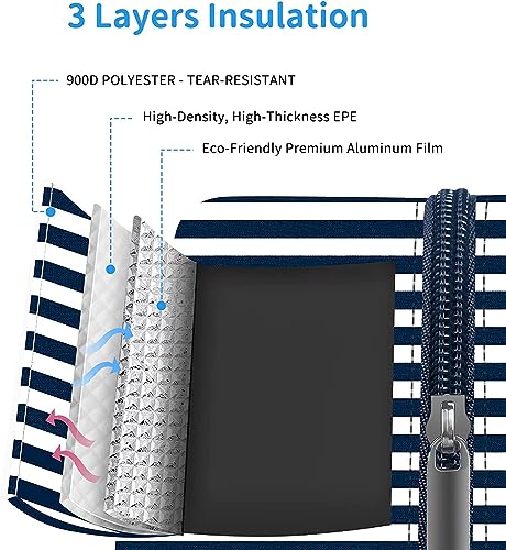 Marine Pearl Insulated Lunch Bag For Women, Thermal Lunch Tote Bag, Leakproof Lunch Box Bag Lunch Bag With Front Pocket, Water Resisted Lunch Bag For Work Picnic (Black Stripe), 11 Liters – Resin