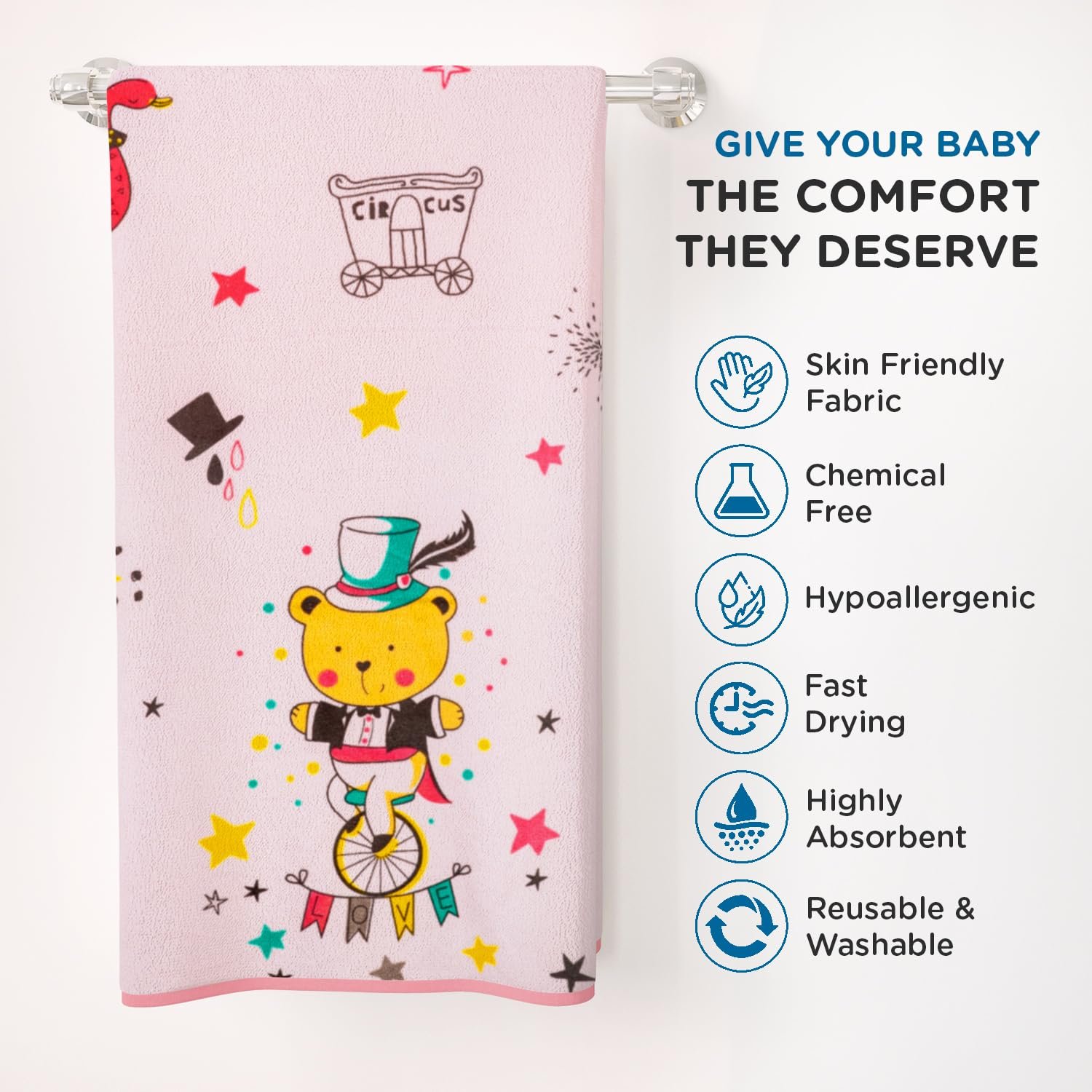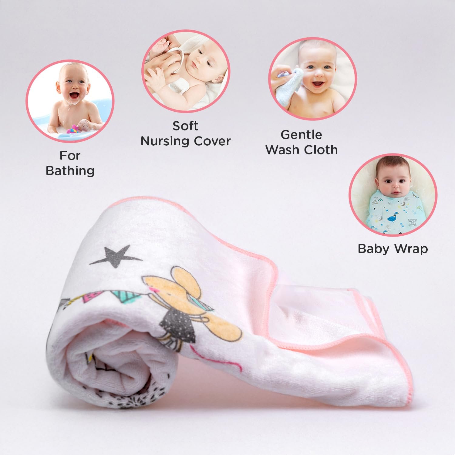 Mee Mee Micro Fiber Baby Bath Towel for New Born | Wash Cloth, Quick Absorbent, Extra Soft Cotton Towels for Kids/Toddlers/Infants/Babies, Pack of 1, Pink 70X110 CM