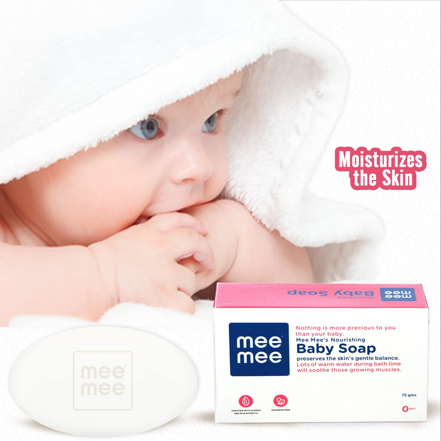 Mee Mee Nourishing Baby Soap For Bath Bar with 100% Natural Amond Oil & Milk Extract, Dermatologically Tested For Soft Baby Skin, 70 gram (Pack of 2)