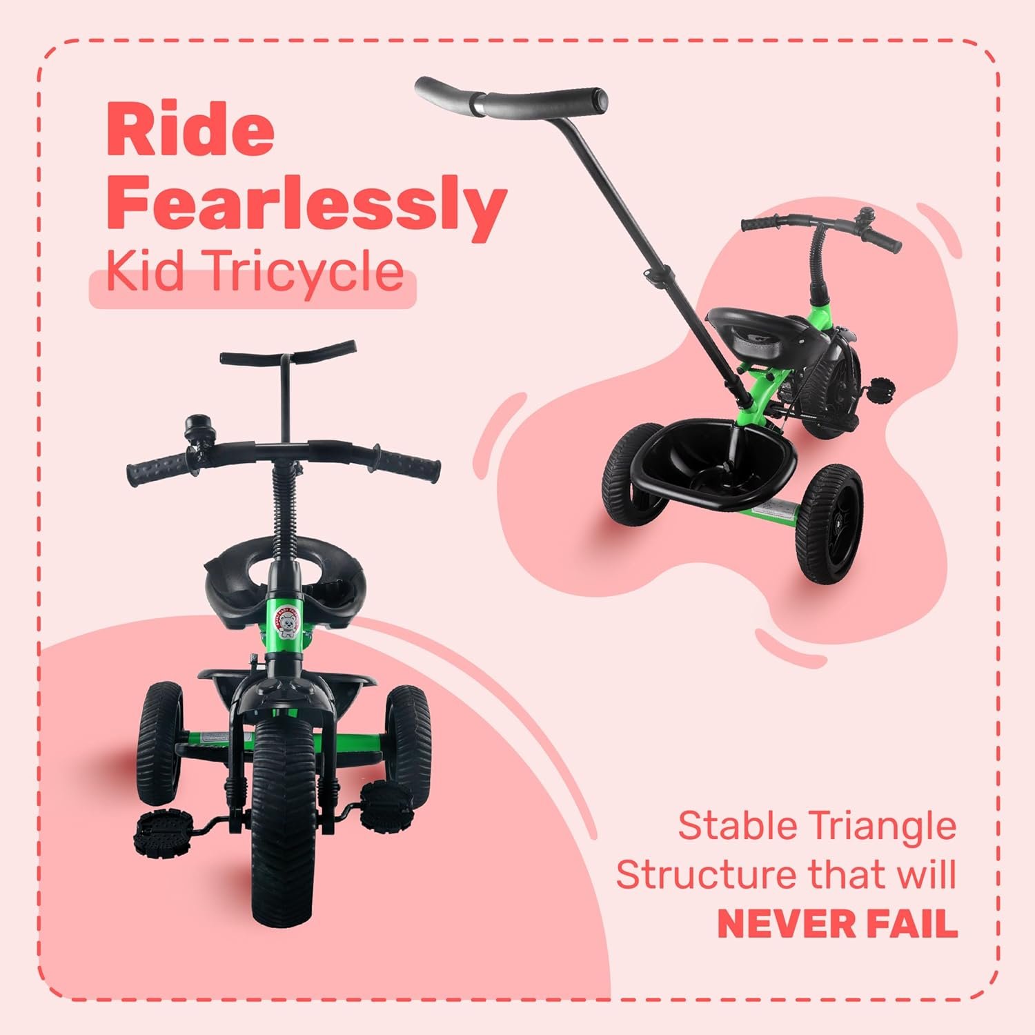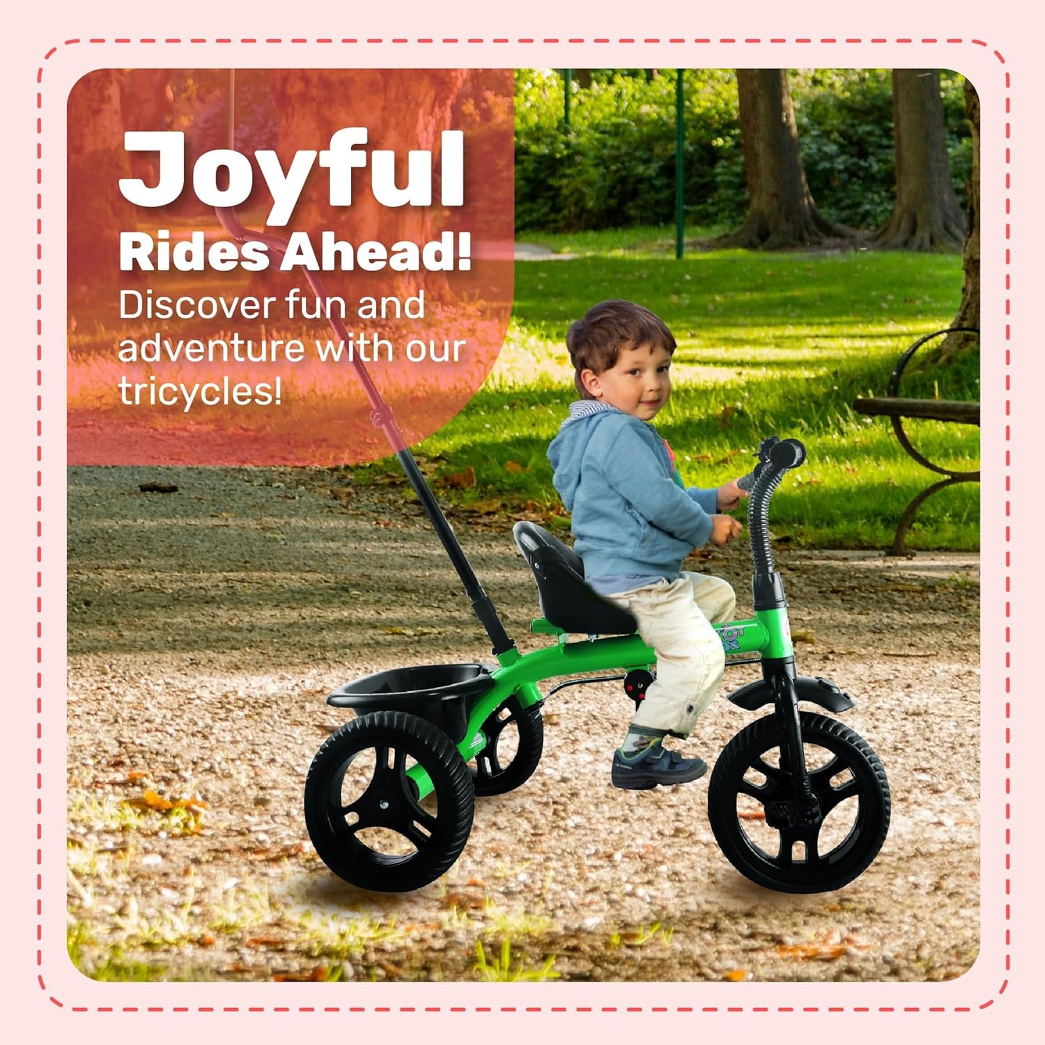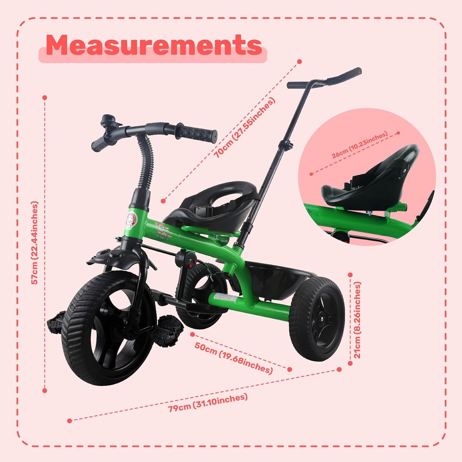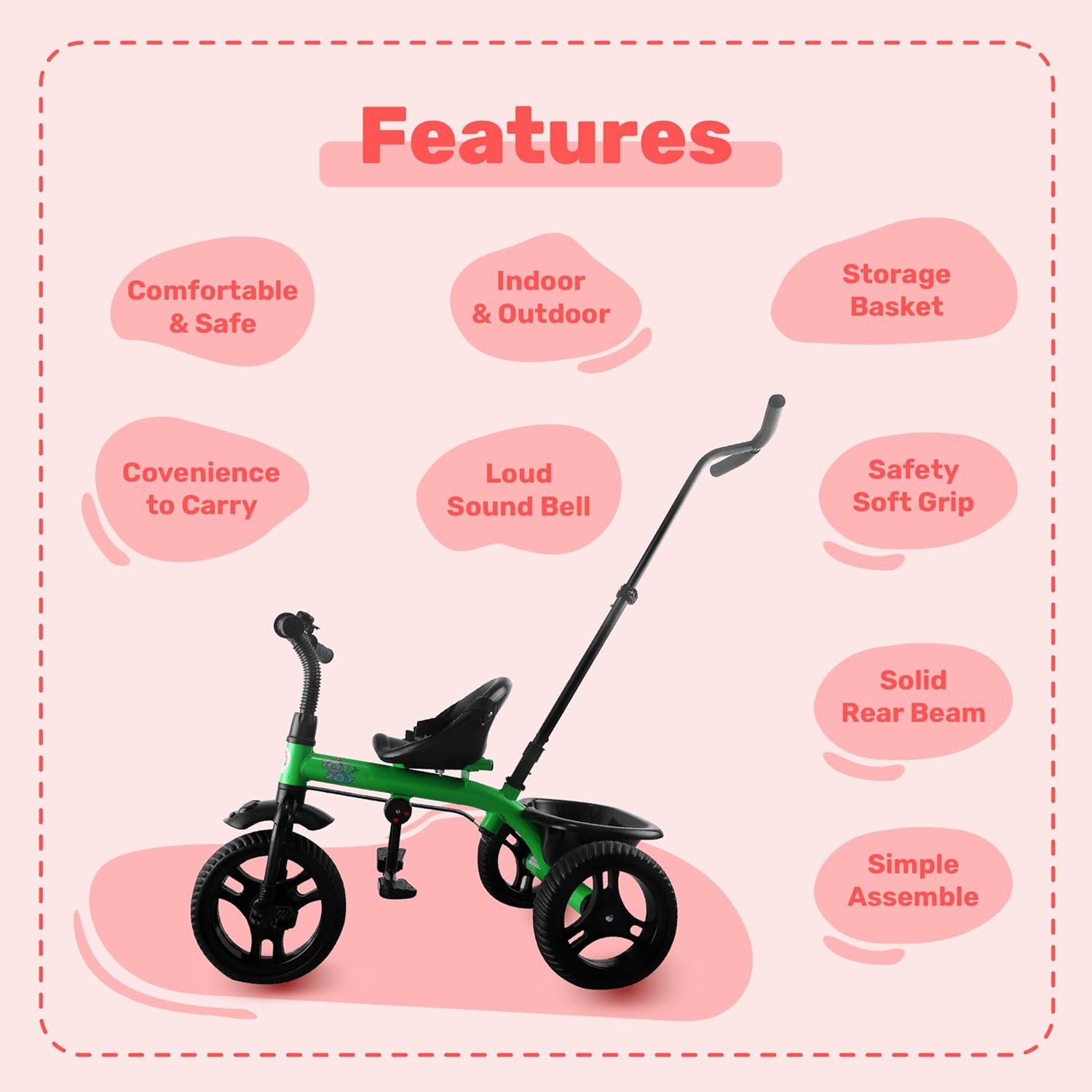 Mini Prima Tricycle for Kids | Tricycle for Kids | Cycle for Kids 1-4 Years | Baby Cycle | Bicycle for Kids with Storage Basket, Cushion Seat and Seat Belt TZ-582 (Green)