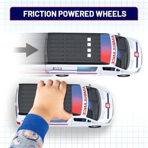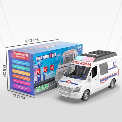 Mirana Ambulance – Big Toy Van for Kids with Multiple Emergency Siren Sound & Lighting – 4 Preloaded Baby Rhymes Included – Openable Doors – Friction Powered Wheels and Durable Gift for Boys & Girls