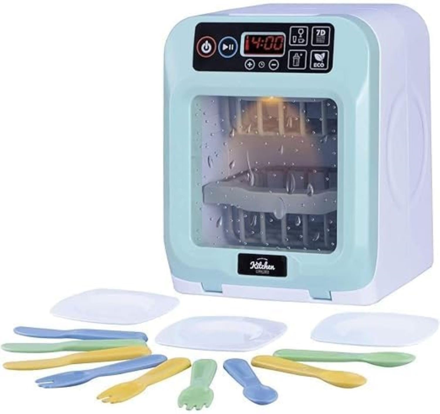 Designed with realistic functions! Simply put the kitchen accessories into the dishwasher and press the correct key! The children can choose the washing mode and the time!