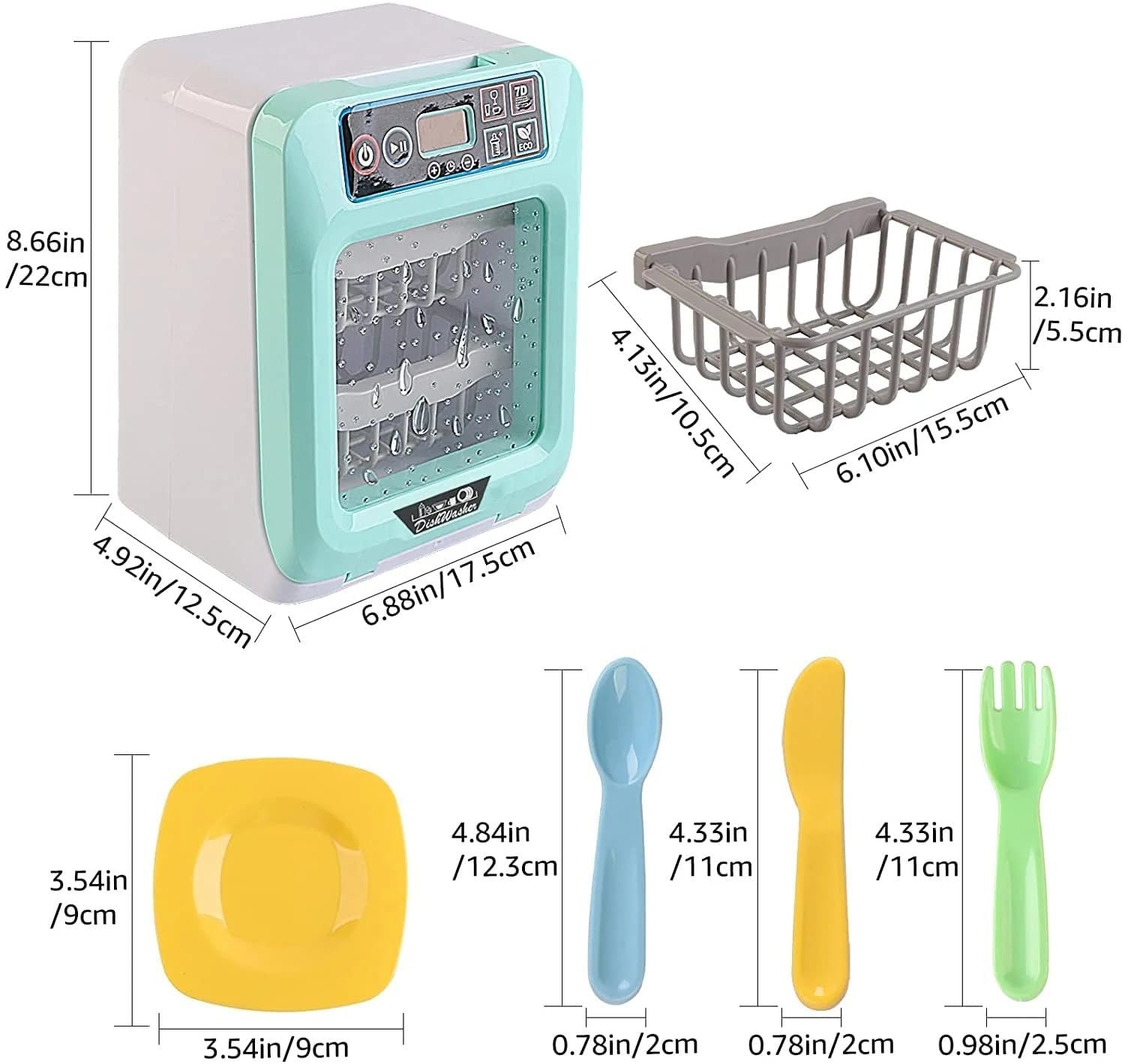 This Dishwasher Play Set is perfect to add to your child’s kitchen collection! This play set includes play cutlery accessories and a realistic battery operated dishwasher.
