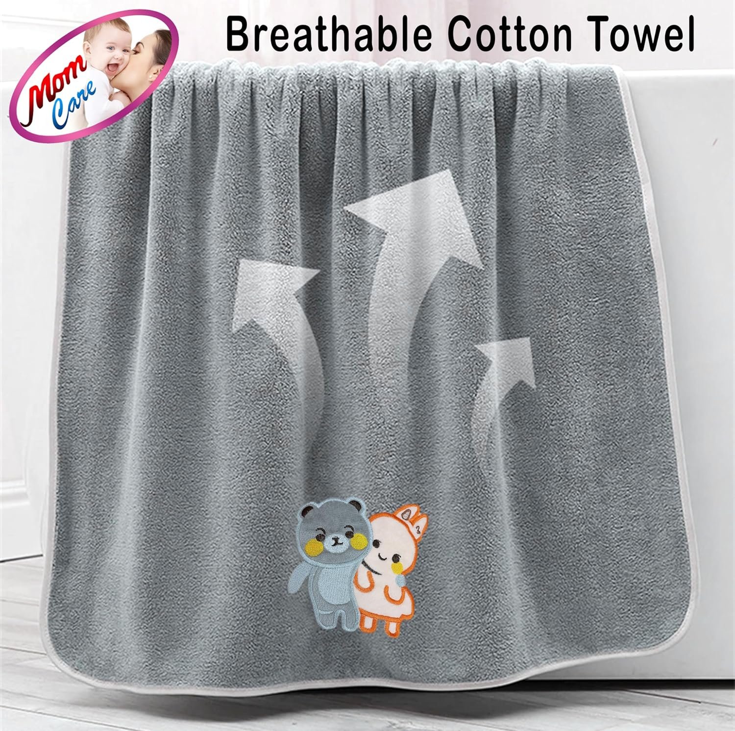 MOM CARE Cotton Microfibre Bath Towels for Kids -Extra Soft/Quick Dry/Strong Water Absorbent/Bathing Towel for Kids,Boys and Girls (Pack of 1) Random Color L-70Cm X B-140Cm, 450 Tc, Multicolor