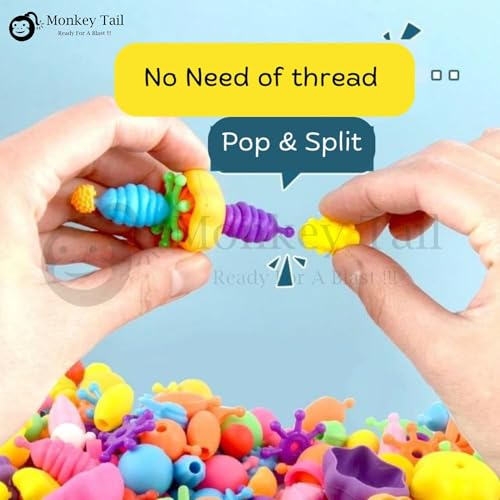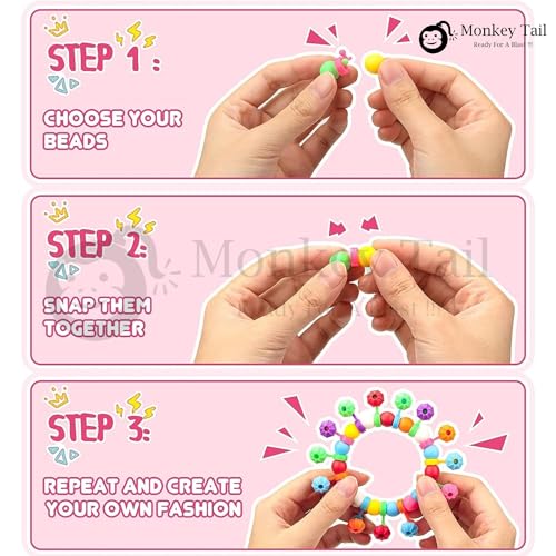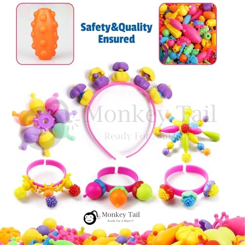 MONKEYTAIL Colorful DIY Pop Beads Jewelry Making Kit for Girls | No-Thread Snap Beads Set for Necklaces, Bracelets, Rings & Hair Accessories – Creative Art & Craft Toys for Kids, Birthday Gift & Party Favors
