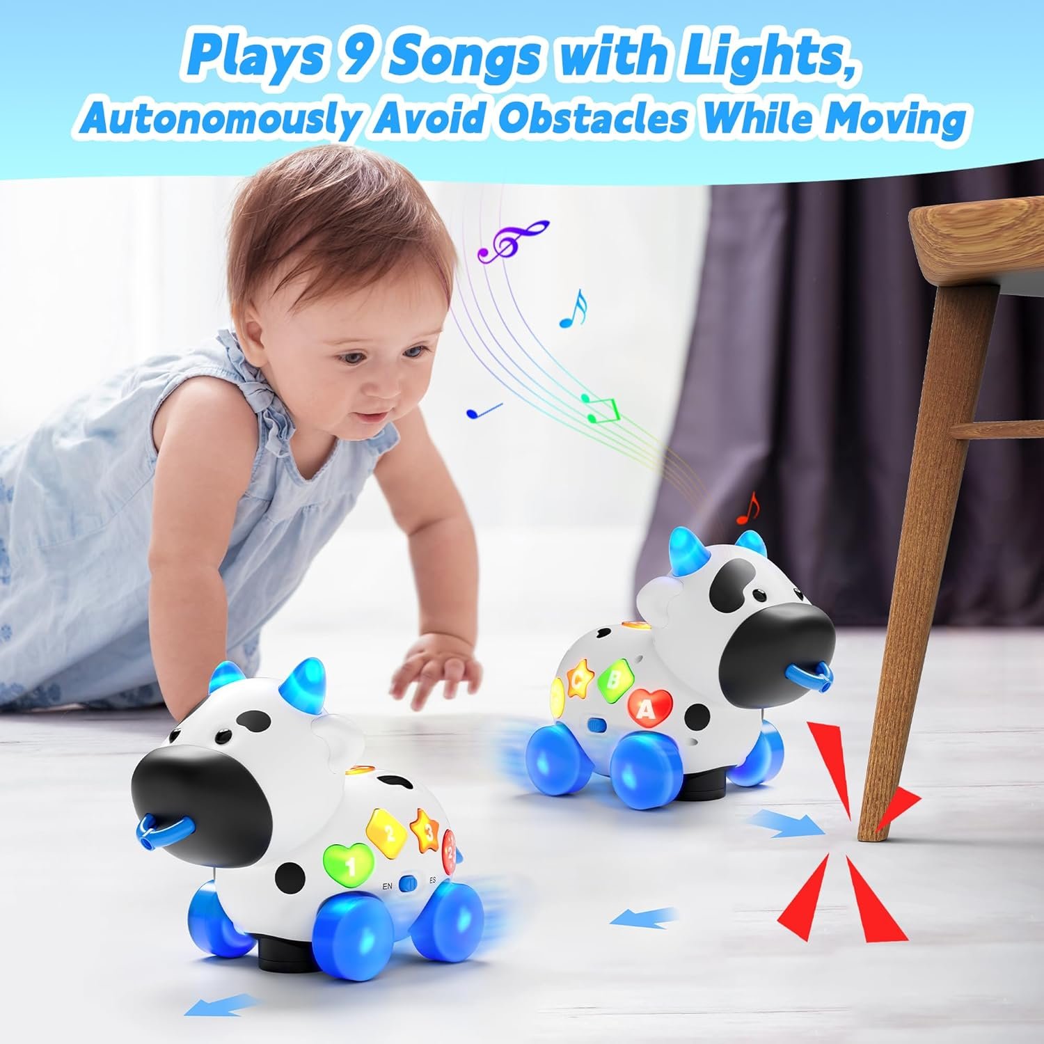 Musical 12-18 Months Baby Toy: With 9 adorable and fun song that is familiar and clear, your toddler 6-9-12-18 month can understand it easily can attracted by the music cow