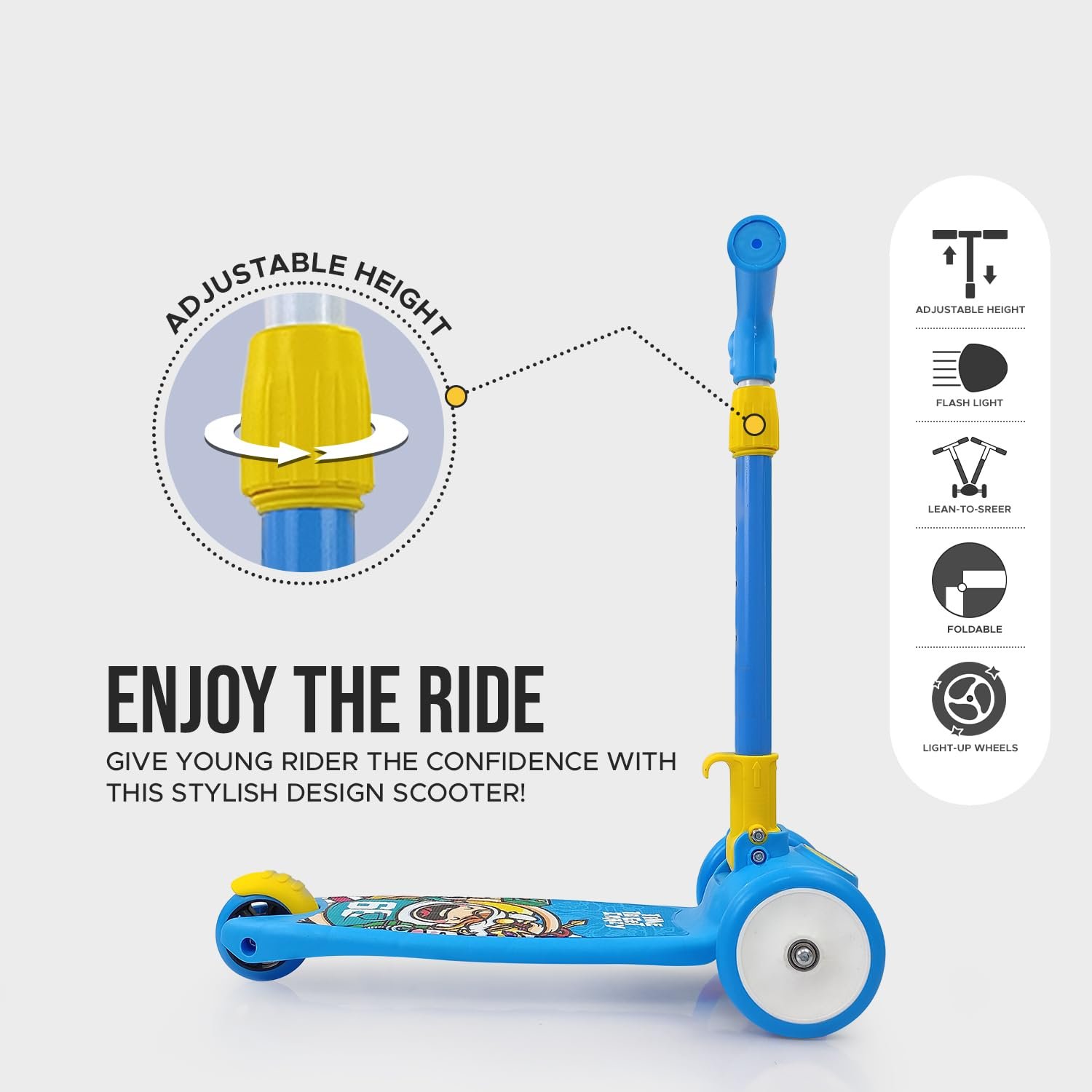 NHR Smart Kick Scooter for Kids, 3 Adjustable Height Scooter, Foldable & Attractive PVC Wheels with Rare Brakes for Kids Age Upto 3+ Years (40 kg, Blue)
