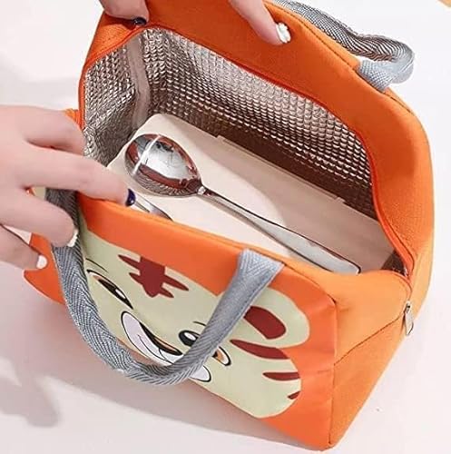 NuShop Insulated Lunch Tiffin Bag for Women – Waterproof Thermal Cooler Tote for Office, School, Work, Travel & Outdoor – Reusable Handbag for Lunch Box Storage (Orange Tiger) (22×18.5×12.5 CM)