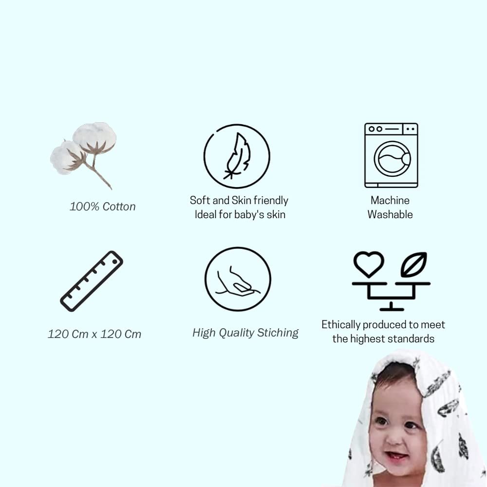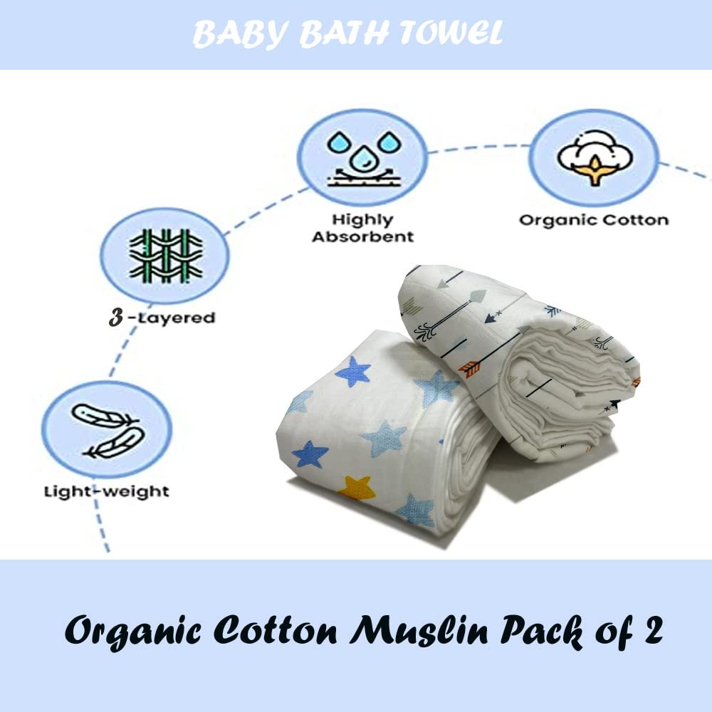 Organic Cotton Muslin Pack of 2 Baby Bath Towel 120 cm X 120 cm_ Multi Star & Arrow