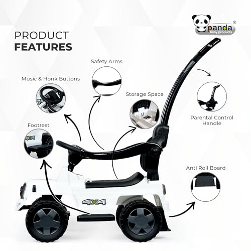 Panda Baby Products Speedy+ Ride-On Jeep for Kids with Music & Horn Steering with Back Support seat, Safety Arms, Parental Control Handle, Seat Storage, for Kids 1 to 3 Years Upto 25 Kgs(White)