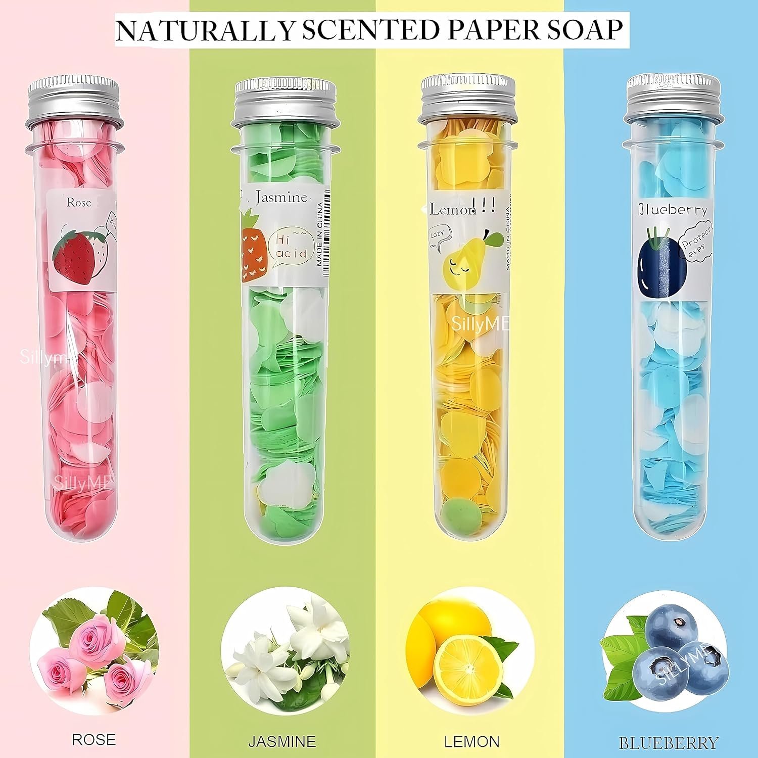 TRAVEL ESSENTIAL – SMALL PORTABLE SIZE – Cute mini soap paper tube fits easily in pouch , bag or even pocket making it a travel friendly products . A perfect travel size toiletries hand soap , a better option than questionable hygienic hotel soap .