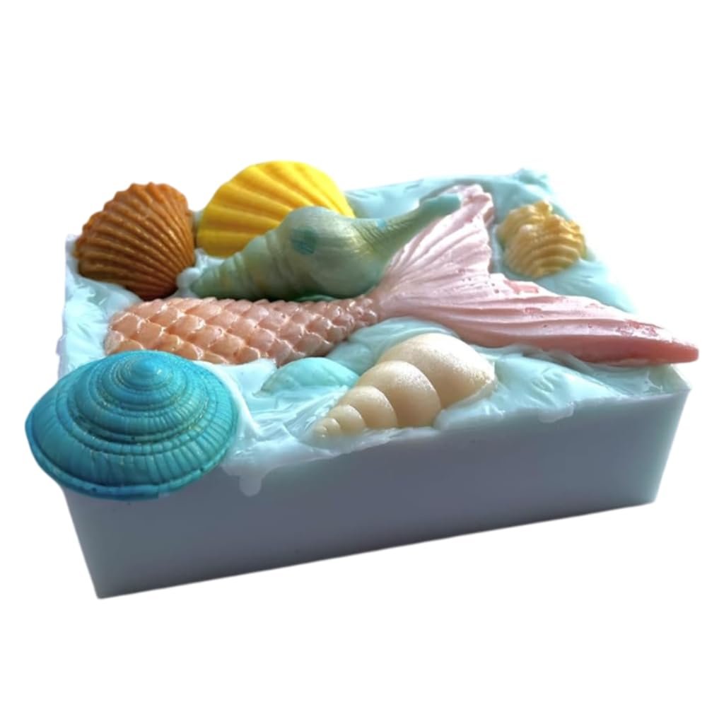 Handcrafted Luxury with a Beautiful Sea Shell & Mermaid Tail Design – Carefully handmade to ensure quality and uniqueness, this mermaid-themed soap is a perfect blend of skincare and artistry. Its stunning design makes it a great addition to any bath set.