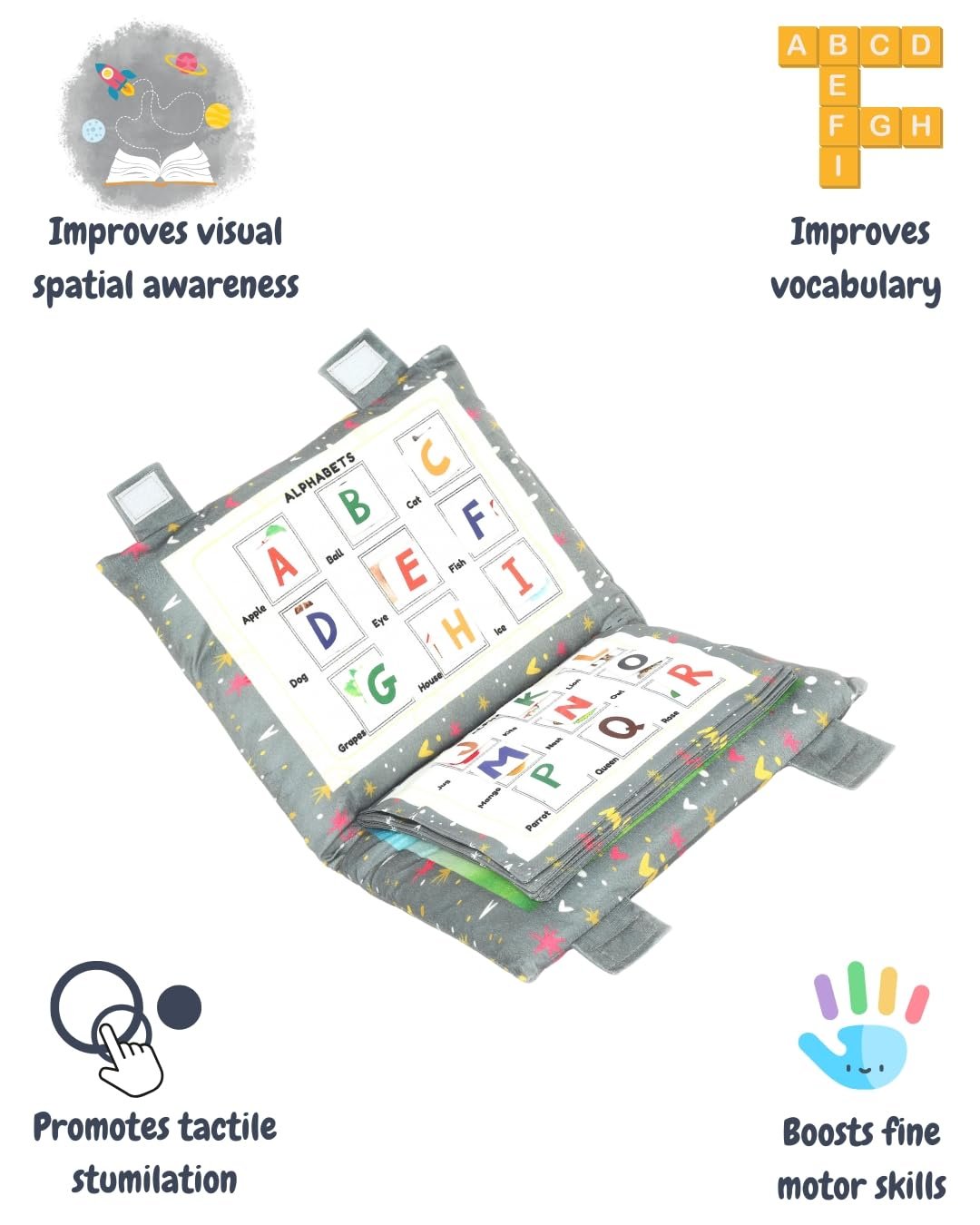 PiK A BOO Fabric Soft Baby Cloth Books, Quiet Busy Activity Book for Babies & Toddlers Age 1-4 Yrs Early Learning Developmental Plush Soft Toy (Grey)