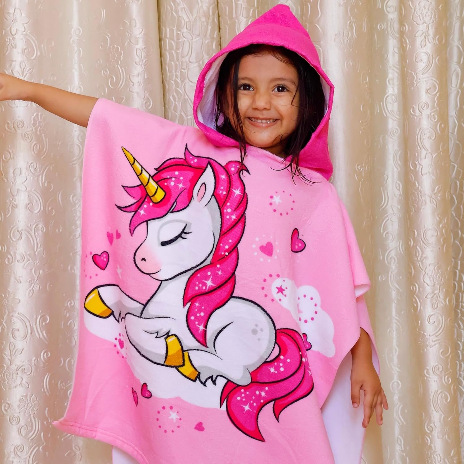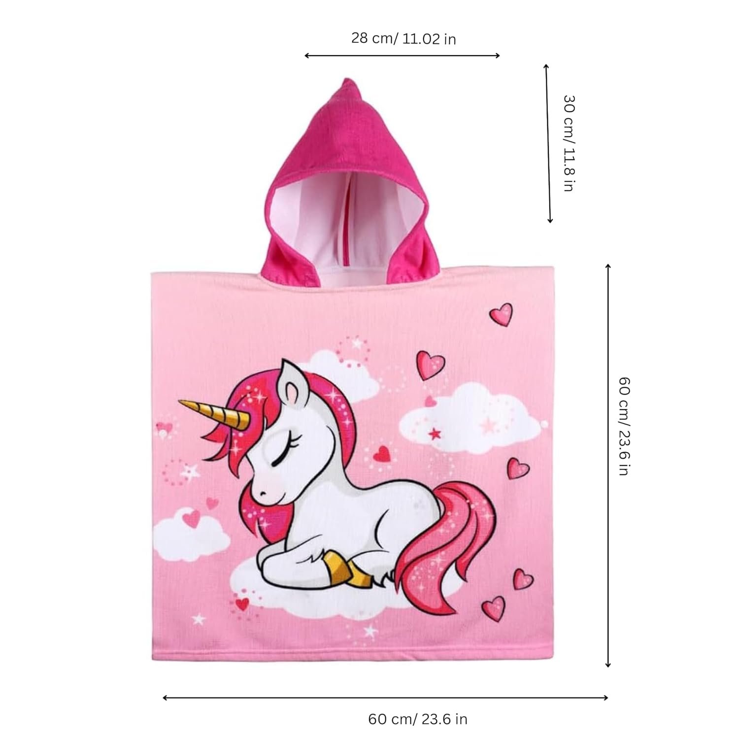 Pink Unicorn Poncho Towel for Kids, Hooded Micro-Fiber Bath Towel for Toddlers, Boys & Girls, Soft & Cozy, Ages 1-7 Years, Cute Design, Bathrobe Alternative 60×60 Cm