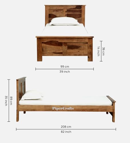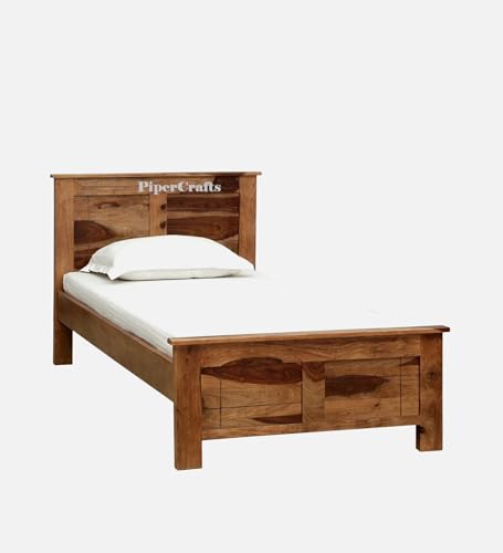 PIPERCRAFTS Sheesham Solid Single Bed Wooden in Rustic Teak Finish Strong Platform Cot Bed/Palang for Bedroom/Hotel & Living Room | Finish:-Honey |Without Matteres