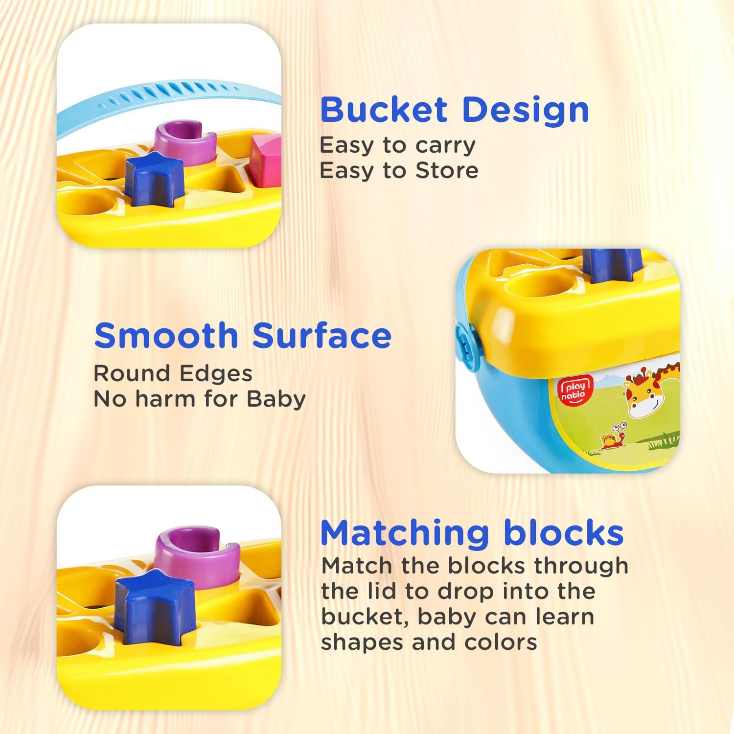 Matching blocks allow your child to drop the blocks into the bucket making them learn shapes and colors.