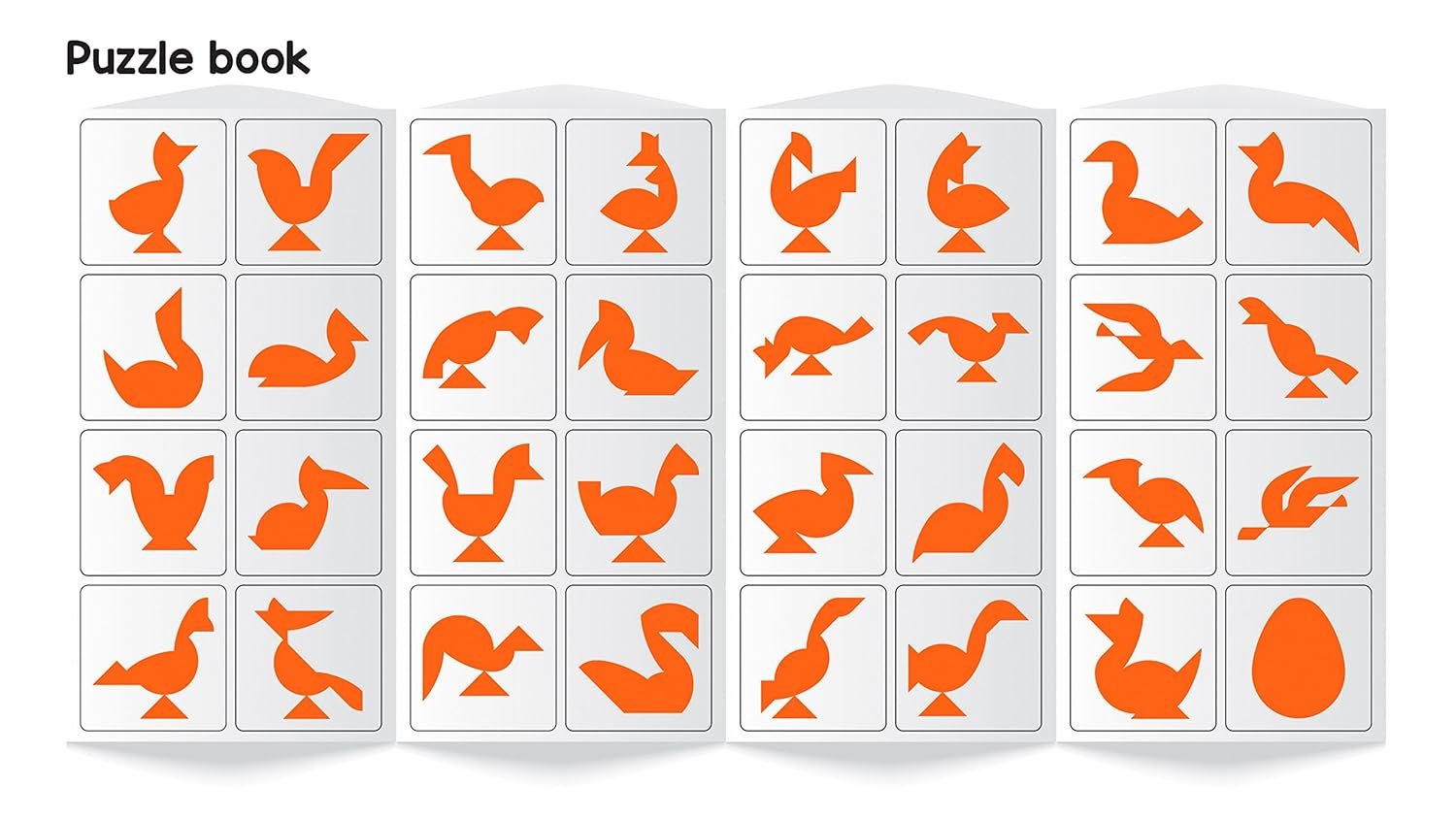 How to play ? Pick one pattern from the puzzle book. Arrange the 9 magnetic shapes to match the pattern. Check the solution in the solution book.
