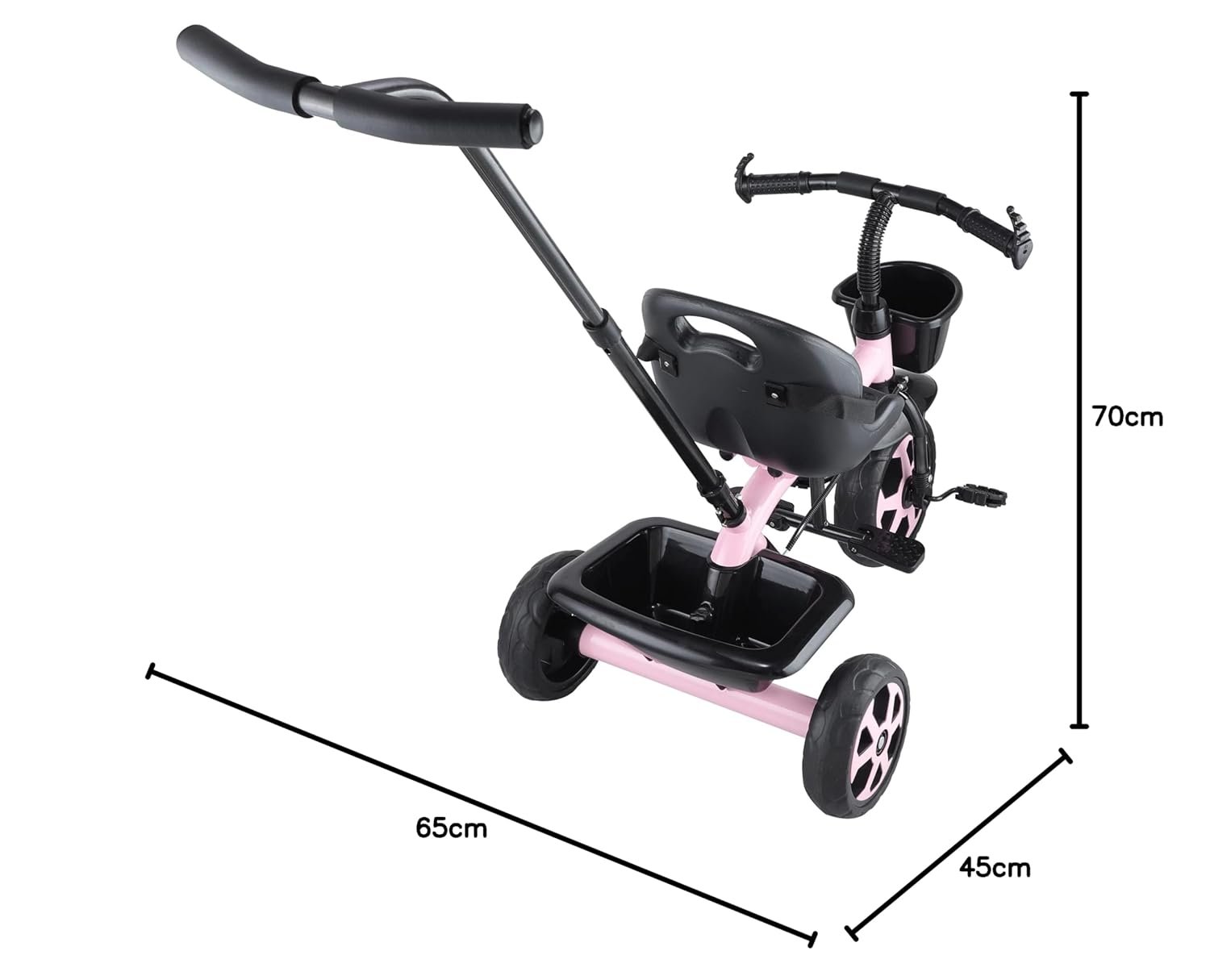 2 STORAGE BASKETS : The tricycle is equipped with storage basket both at the end as well as at the back to keep child\’s essentials