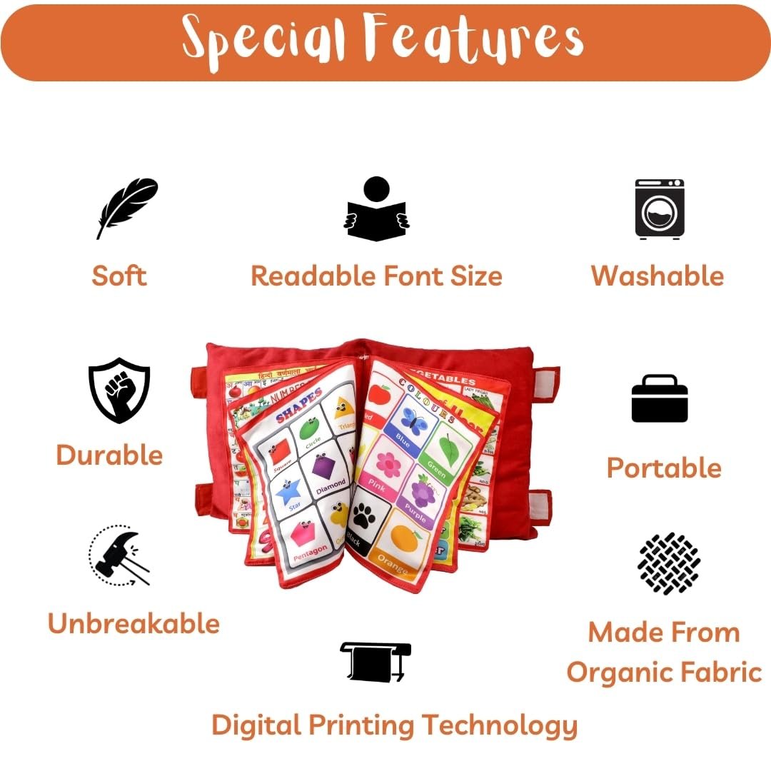 Kids Educational Toys : This Cushion Book helps your kids to educate is an unique way. kids can learn 12 things like ABCD, Fruits, Vegetables and other basic things