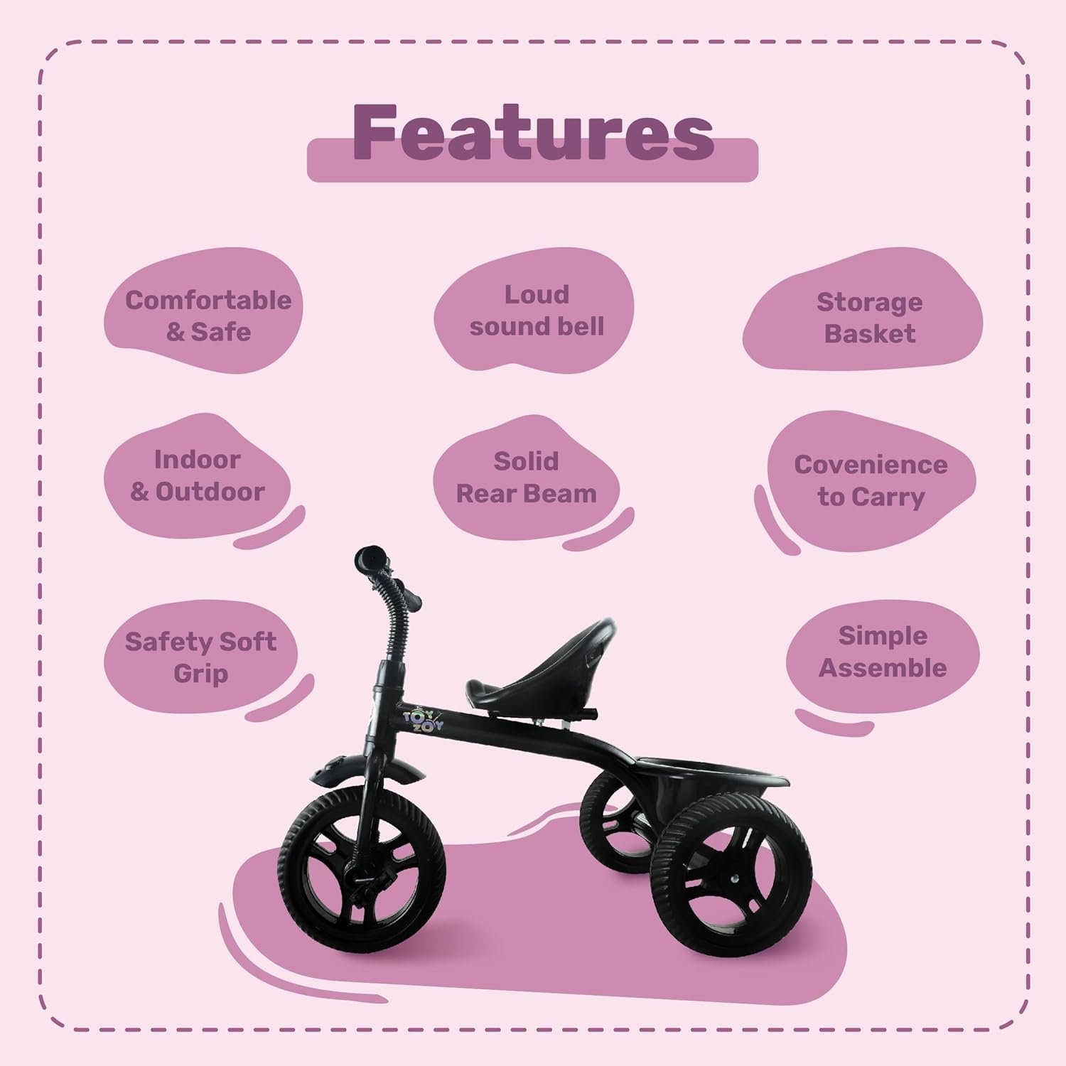 Safety: The Toyzoy tricycle for toddlers has passed rigorous safety tests, ensuring that all materials and designs are child-safe.