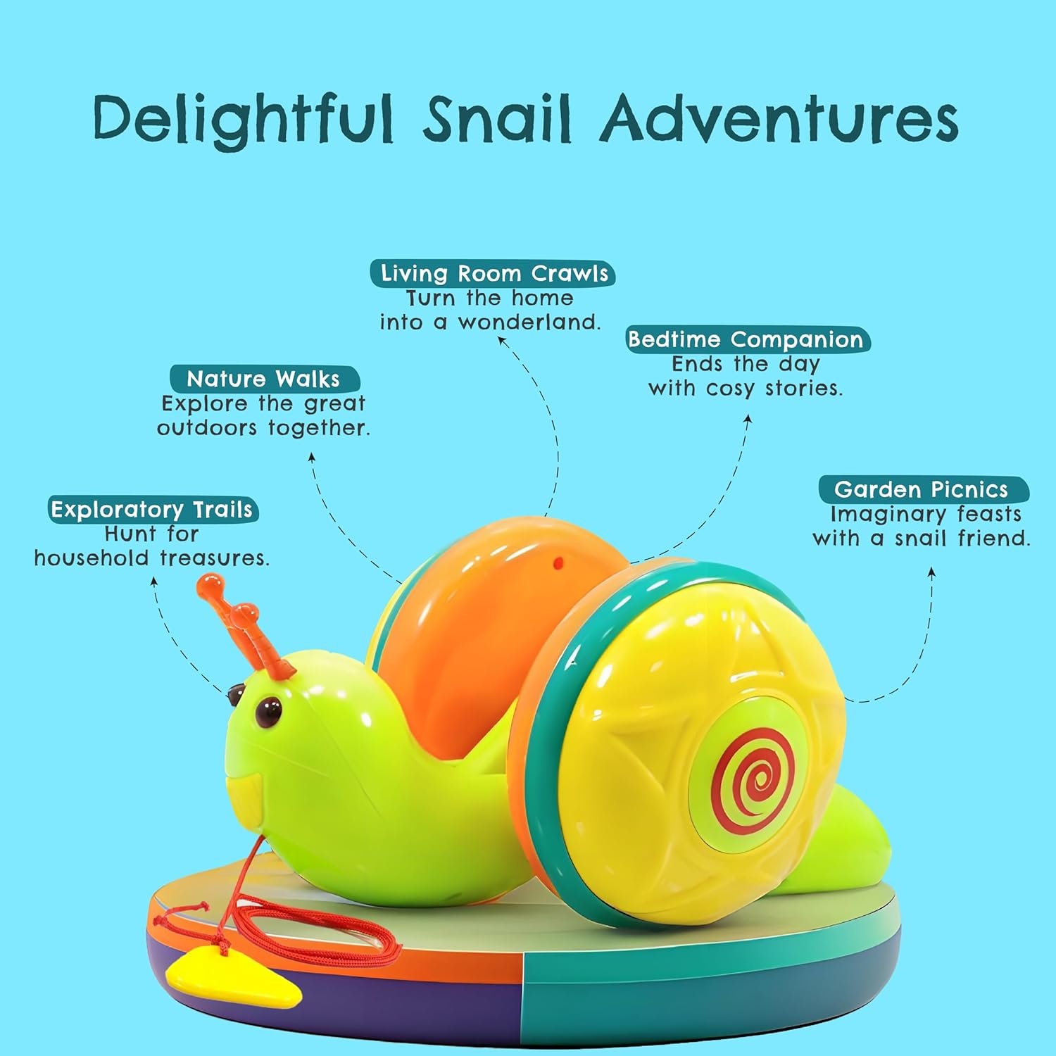 Vibrant and Child-Safe Design: Our Pull Along Snail is a parade of bright, stimulating colors, that captivate your child\’s attention. Crafted from premium plastic and non-toxic paints, it meets stringent safety standards, ensuring a worry-free playtime experience for parents and kids alike.