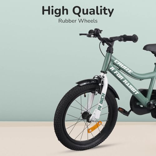 R for Rabbit Cruize Bicycle for Kids 14T Inch Cycle with Training Wheels for 3 to 5 Years Baby Boys & Girls of Upto 40 Kgs Weight Capacity – 90% Installed (Olive Green)