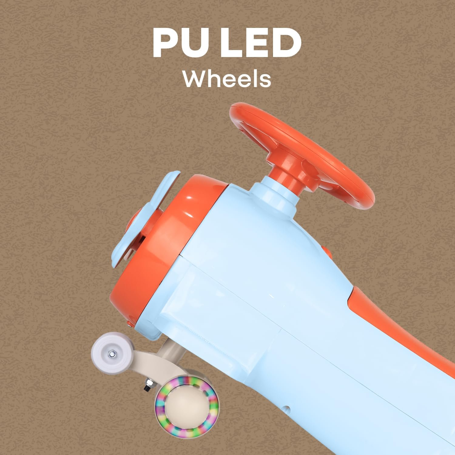 R for Rabbit Iya Iya Aero Kids Swing Car, Scratch Free PU LED Wheels with ABEC7 Bearing, Baby Ride on Magic Toy Panda Car for 2+ Years Boys & Girls, Upto 75 Kgs (Blue Orange)