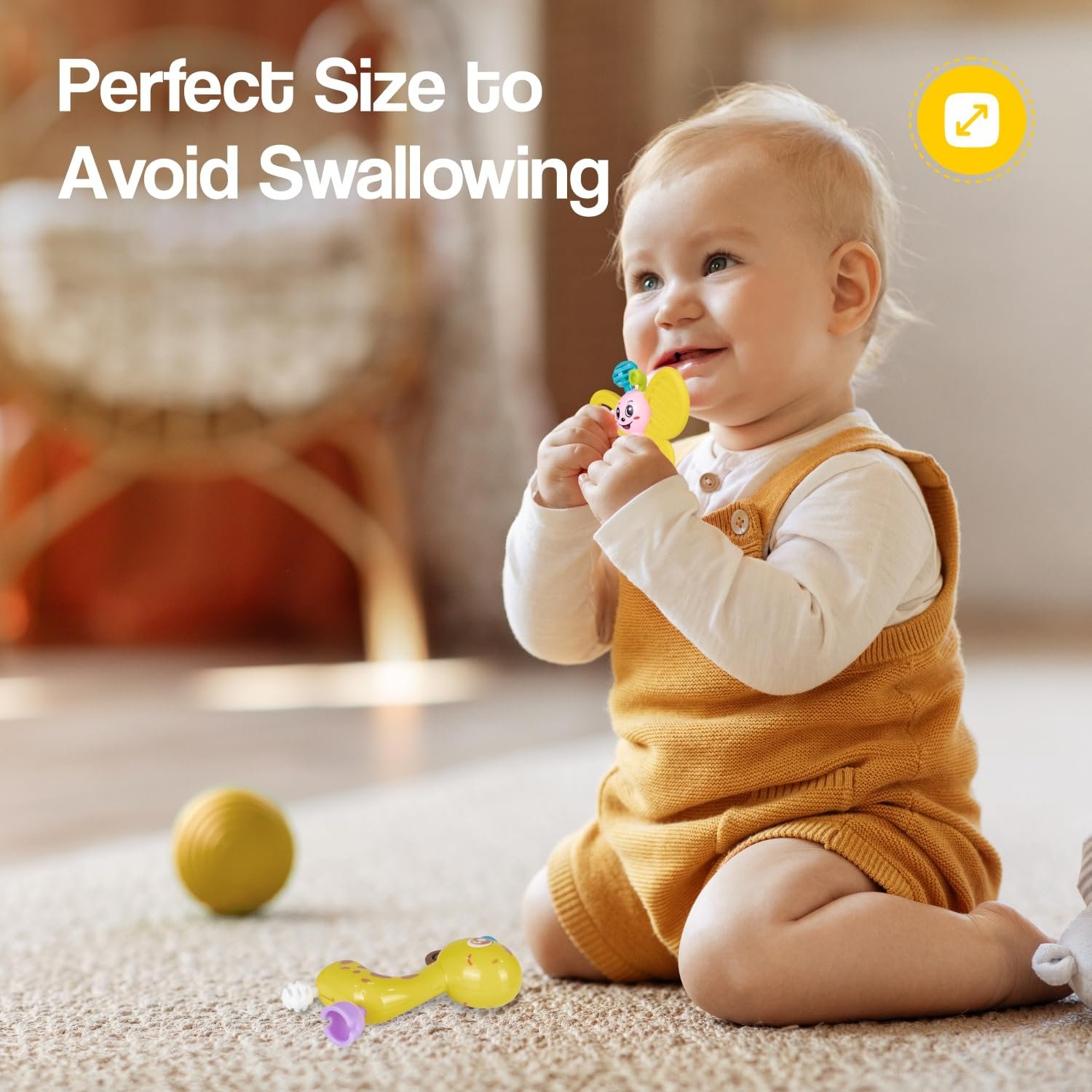 Cute Animals: Adorable cute animals like elephants, giraffe, butterfly, sparrow and bees make this rattle set more engaging for babies.