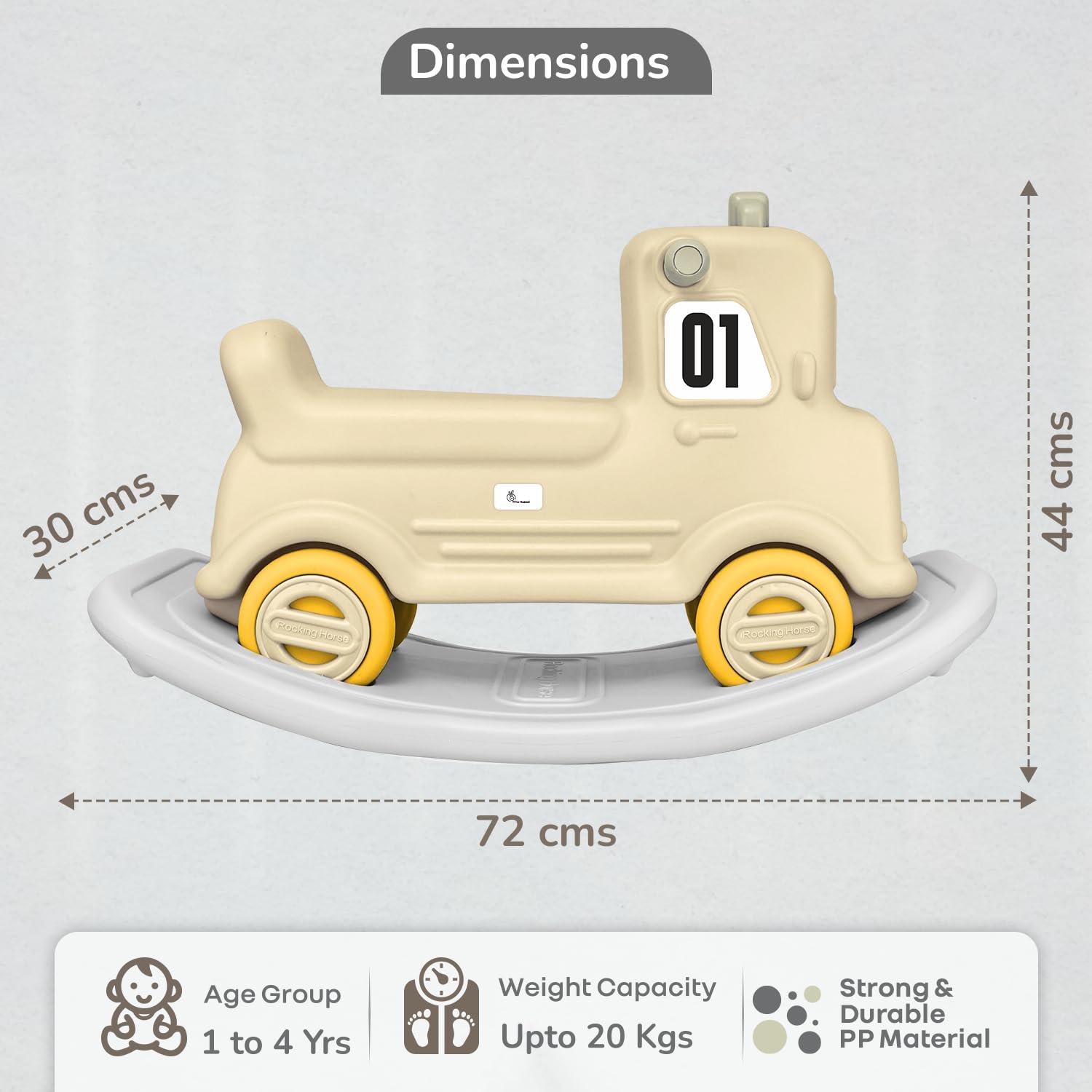 Safety First: R for Rabbit’s Rock N Ride is BIS Safety certified made from BPA free PP material that makes it durable, lightweight, non-toxic, flexible, and resistant to moisture, stains, and heat. Also, the 40-degree tilt supports the right balance to prevent baby’s tip-over.