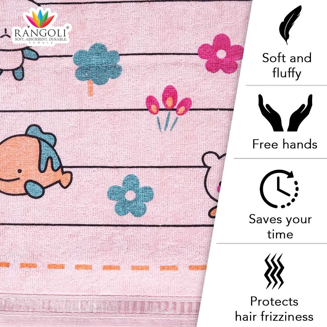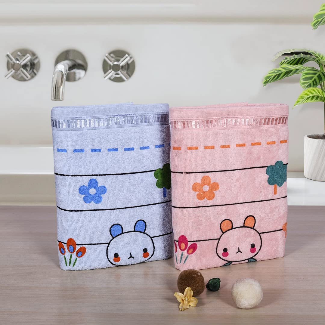 Rangoli Baby Towel, 100% Cotton 410 GSM, Pack of 2 Kids Bath Towel Super Soft & Highly Absorbent, Anti-Bacterial, Multipurpose Towels for Girls and Boys – Light Blue & Light Pink (50cm x 90cm)
