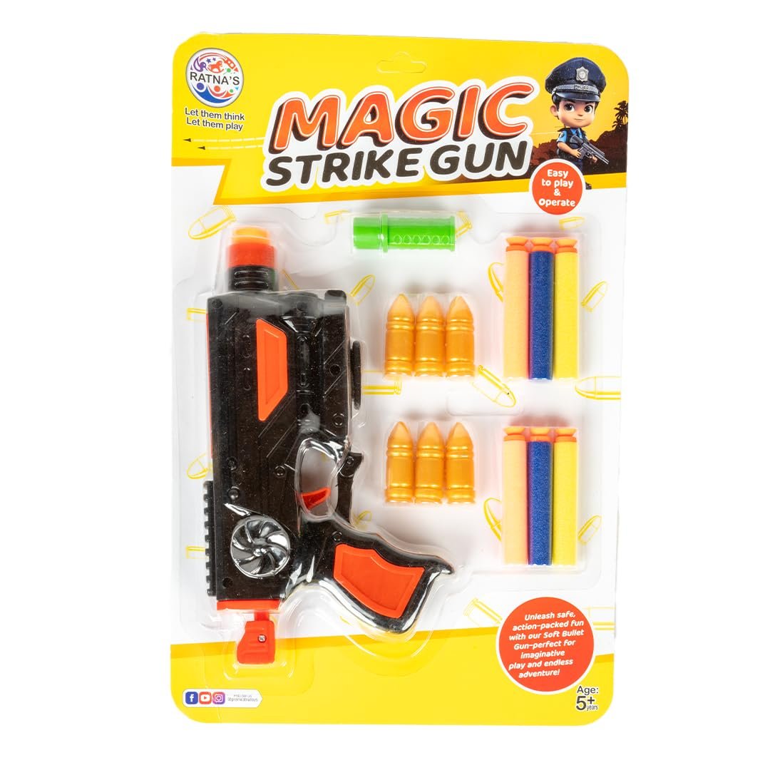 Ratna\’s Magic Strike Gun Toy Set, 6 Vacuum Bullets, 6 Soft Bullets, Fun Target Shooting Battle Fight Game for Kids 5+ Years