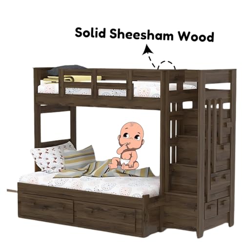 - Bunk Bed Material: Solid Sheesham Wood, Style: Contemporary, Color: Walnut Finish