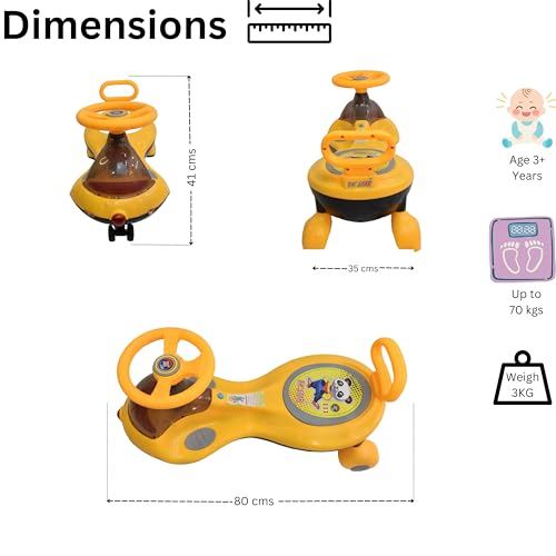 RK Star 111 Kids Swing Car, Ride on Magic Toys Car, Magic Twister Car, Magic Toy Car for Kids Suitable for 3+ Years Boys & Girls,Scratch Free PU Wheels, 70 Kgs Weight Capacity (Yellow)