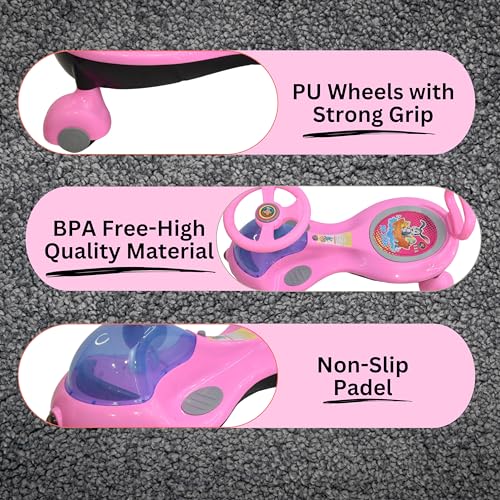 - PU Wheels: Equipped with high quality PU wheels, you can even let your kid glide indoors as this swing car has a strong grip to glide smoothly without leaving any marks on the floor.