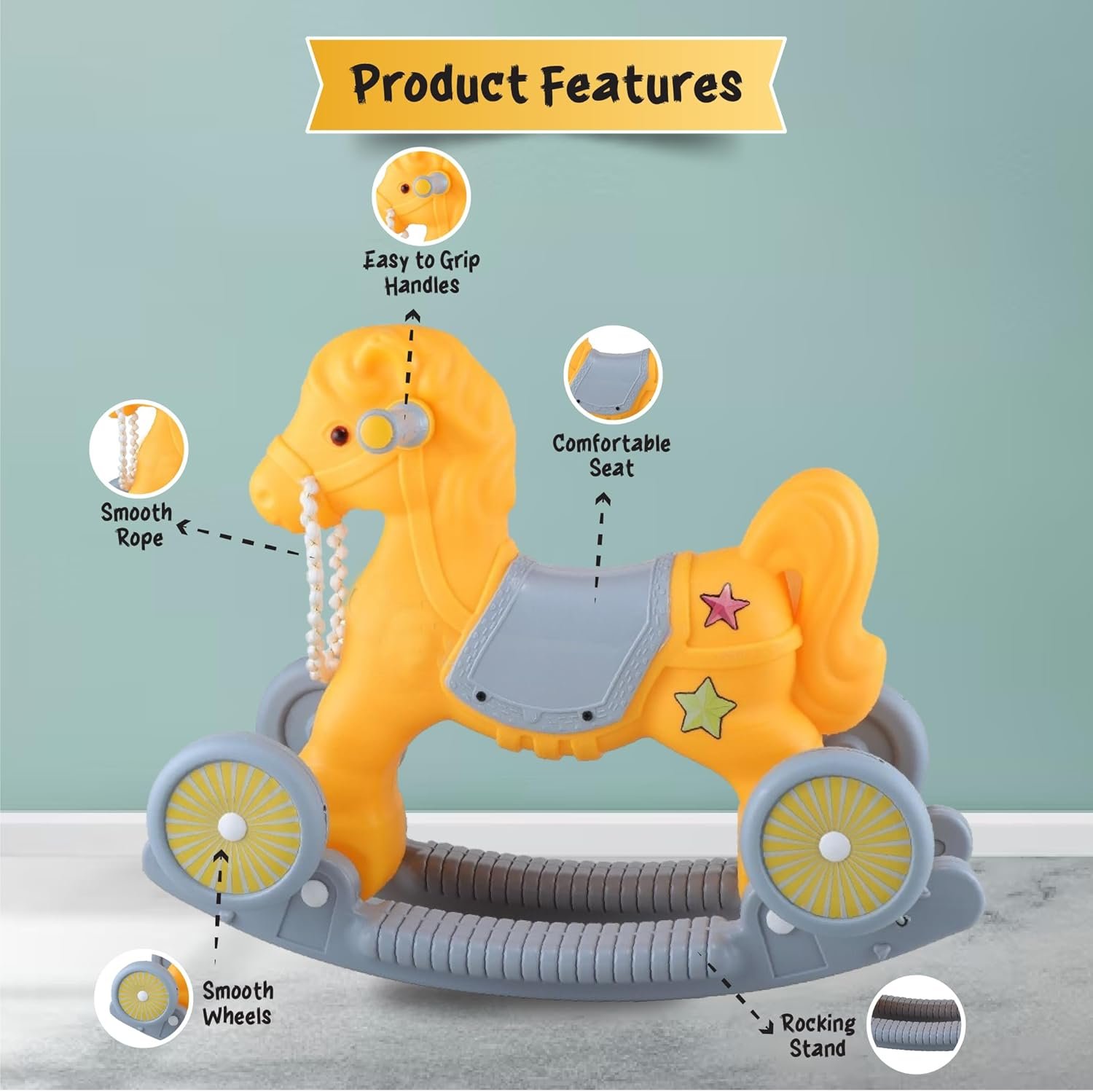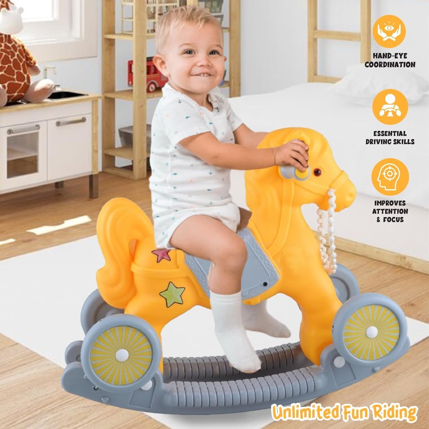 Rockin\’ Roll Horse Ride – 2 in 1 Adventure|Riding Horse for Toddler|Baby Rocking Chair Push Ride On Toy Car|Rider Cum Rocker|Birthday Gift for Kids 1-3 Years|Made in India|Yellow