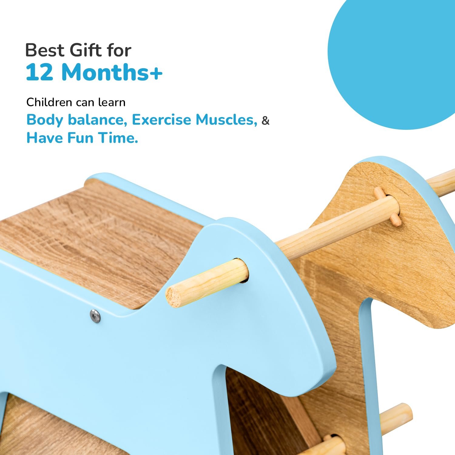 BEST GIFT FOR 12M+: The wooden rocking horse is more durable and will accompany babies throughout their childhood. Children can learn body balance, exercise muscles, and improve brain development. This colourful rocking horse is the best festival gift for toddlers.